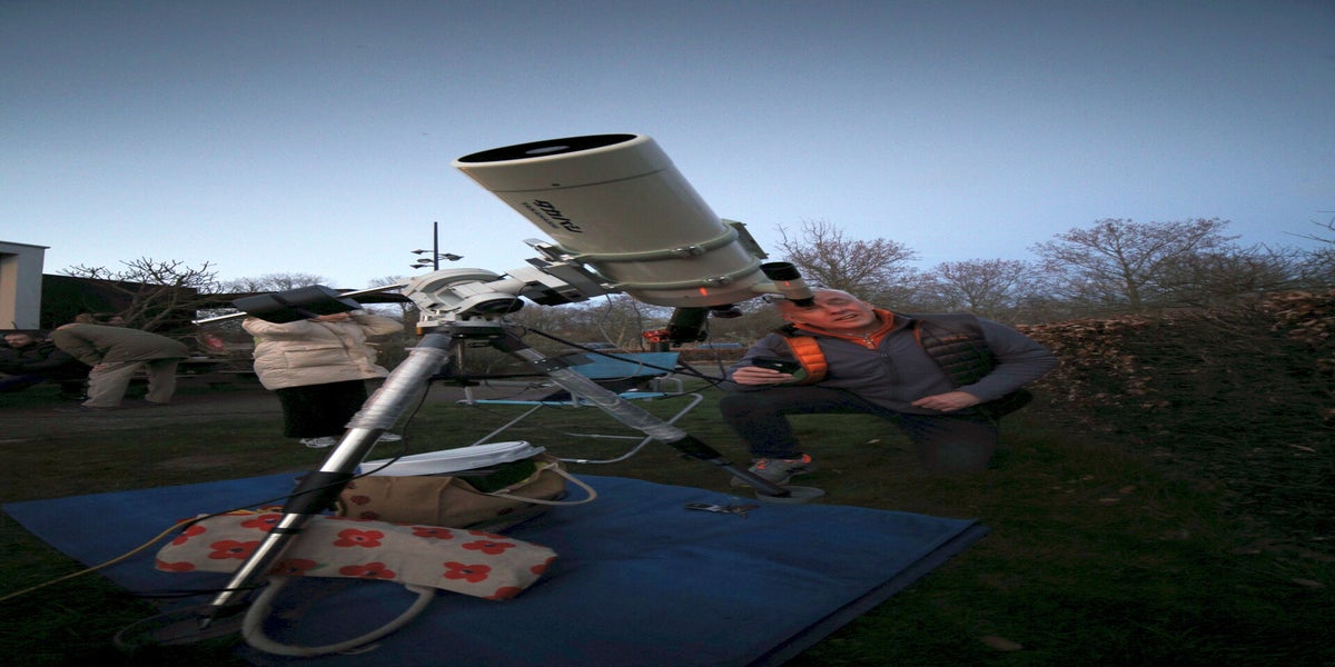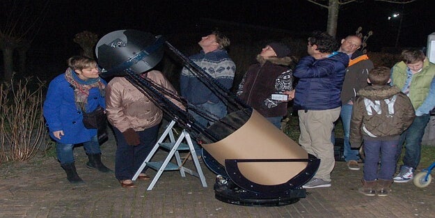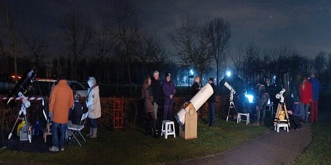 Daarna gaan we naar buiten. Aan de zuidoostelijke horizon schittert Saturnus met zijn ringen, en voor de liefhebbers met scherpe ogen staat ook Neptunus vlakbij.