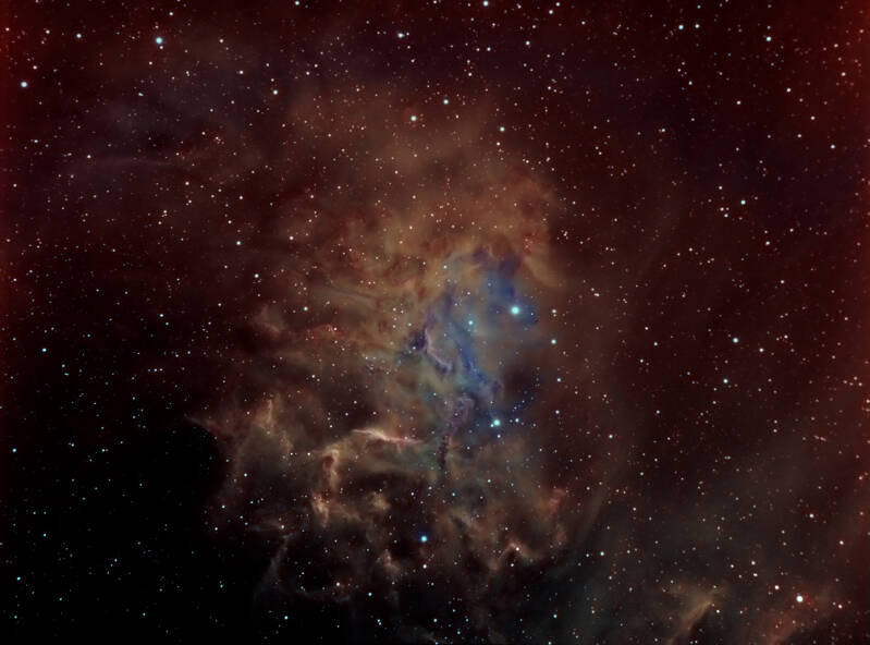 Soulnevel IC1848. (AAPOD en prijswinnaar ATIK). 10 uur belichting. Narrowbandfilters Ha,Olll en Sll. WO 72 mm f6. Camera Atik 383 L mono. Aug en Sept.2010. Domaine de Pradines.