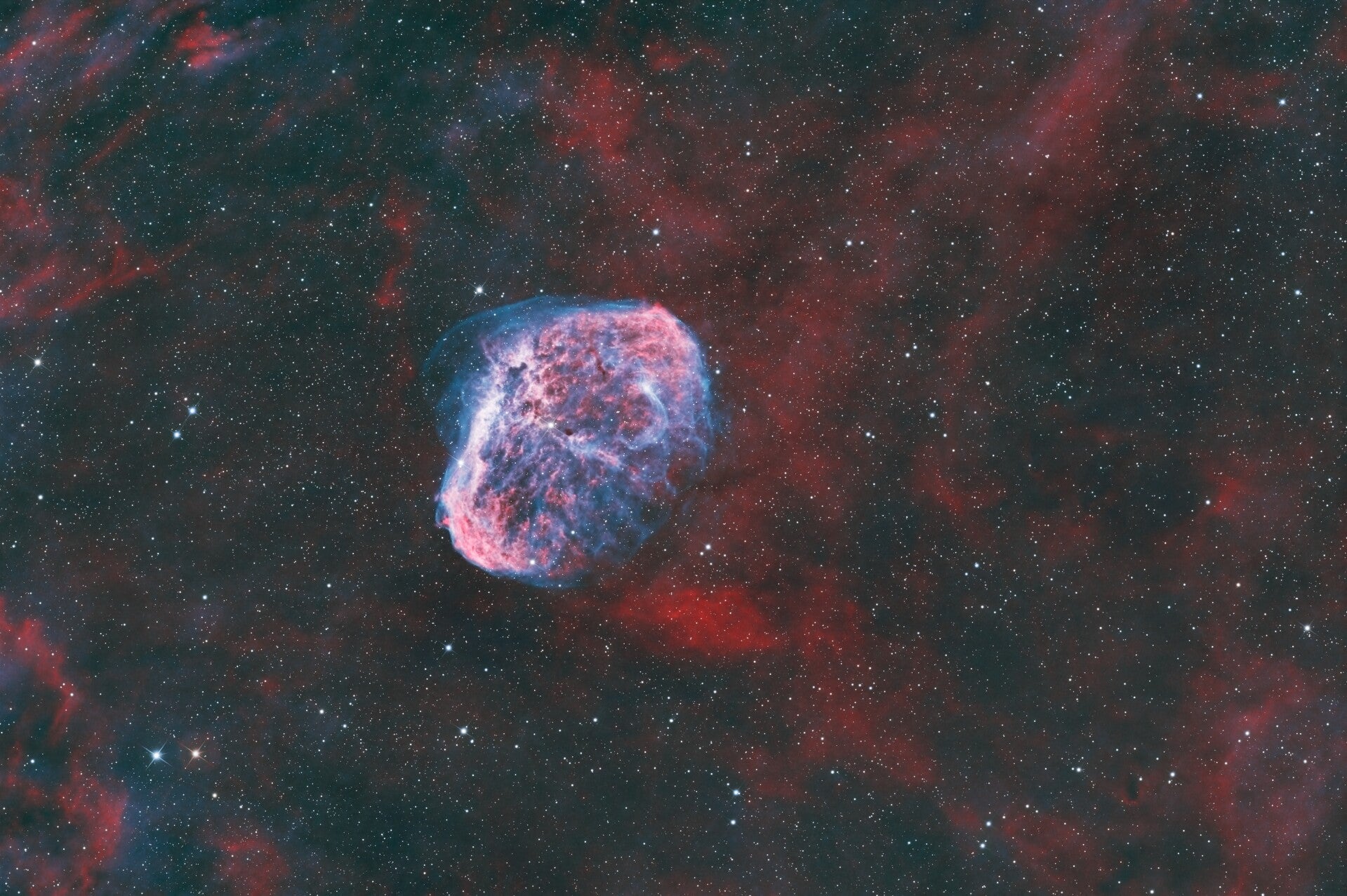 NGC 6888, Cresent Nebula, HOO 200mm f/4 Newton HR CC, ASI294mm, EQ6, Bussum augustus 2024
