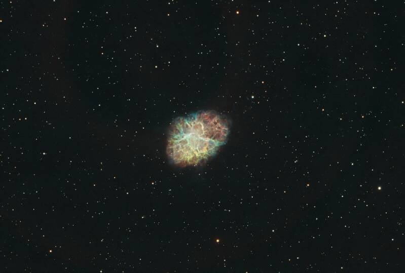 M1 Crab Nebula, SHO, 200mm f/6.3 C8, ASI294mmPro, EQ6, Bussum februari 2023