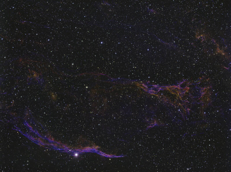 NGC 6960 Veil Nebula, SHO 80mm f/5.5, Atik383L, EQ6, Zuid-Frankrijk september 2020